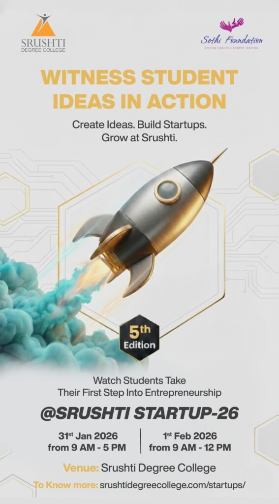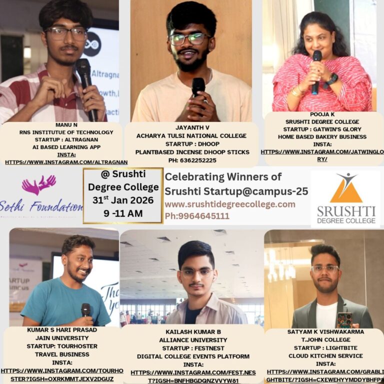 Srushti started two decades ago, built on the foundation of enabling youth as Social Innovators impacting education of rural children. In 2011, Srushti Degree College was established, aiming to contribute to society by providing students from all classes access to Higher Education, where their aspirations, innovative and entrepreneurial spirit with co-creative leadership skills are nurtured. Students get educated holistically within a campus where they flourish, preparing themselves for careers and purposeful living to impact themselves, society, and the environment